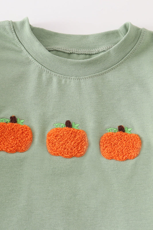 Green Pumpkin Print Girl Ruffle Shorts Set