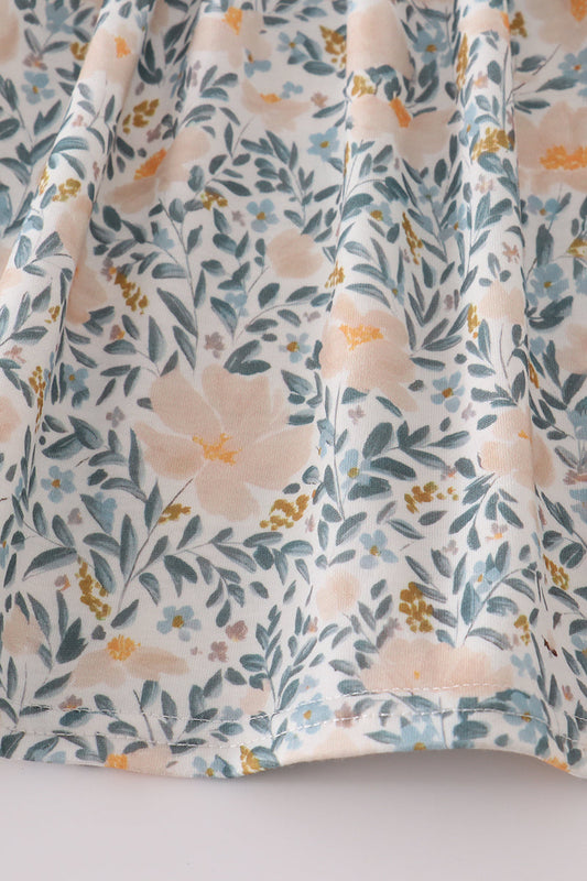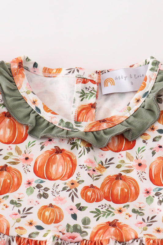 Fall Floral Print Pumpkin Embroidery Bloomer Set