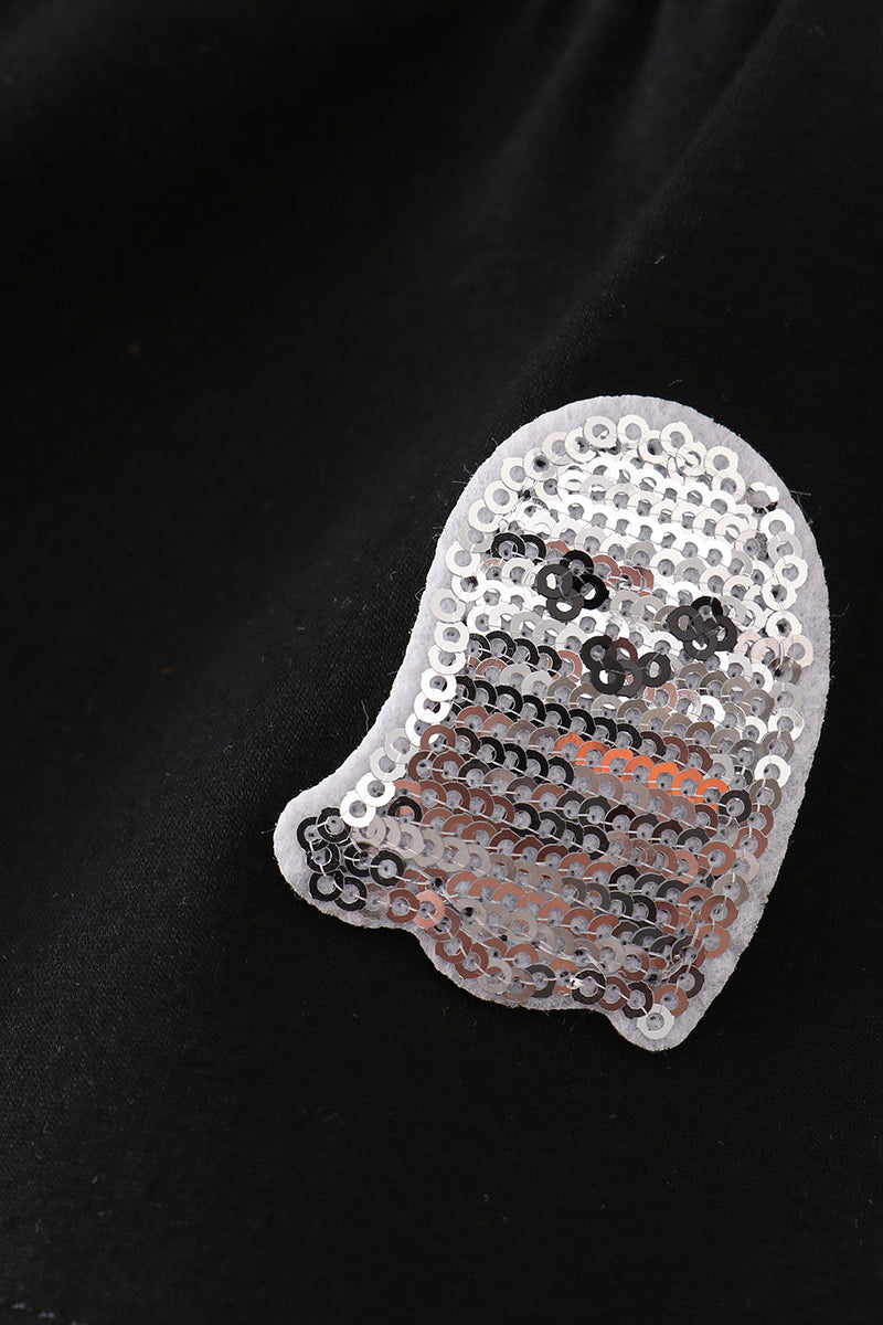 Step into the spotlight with this Black Ghost Sequin Ruffle Dress! Sparkling sequins catch every eye, while playful ruffles add a flirty bounce to your look. Perfect for dancing the night away or making a bold statement at your next party, this dress combines spooky charm with dazzling style. Get ready to turn heads and have fun!