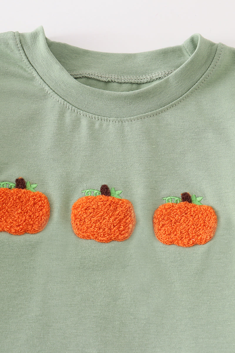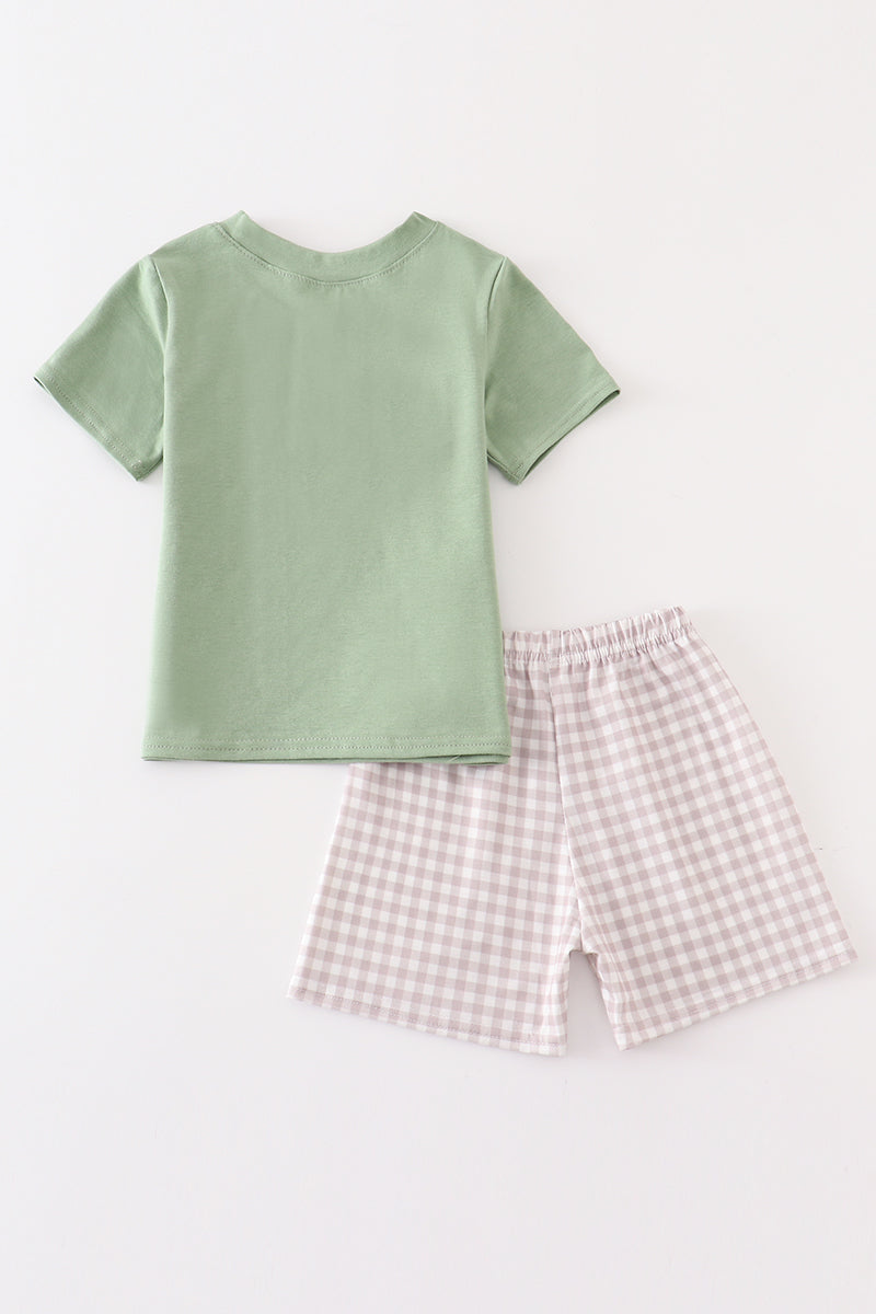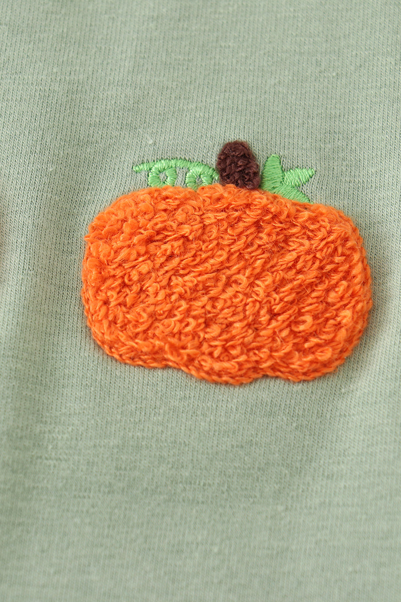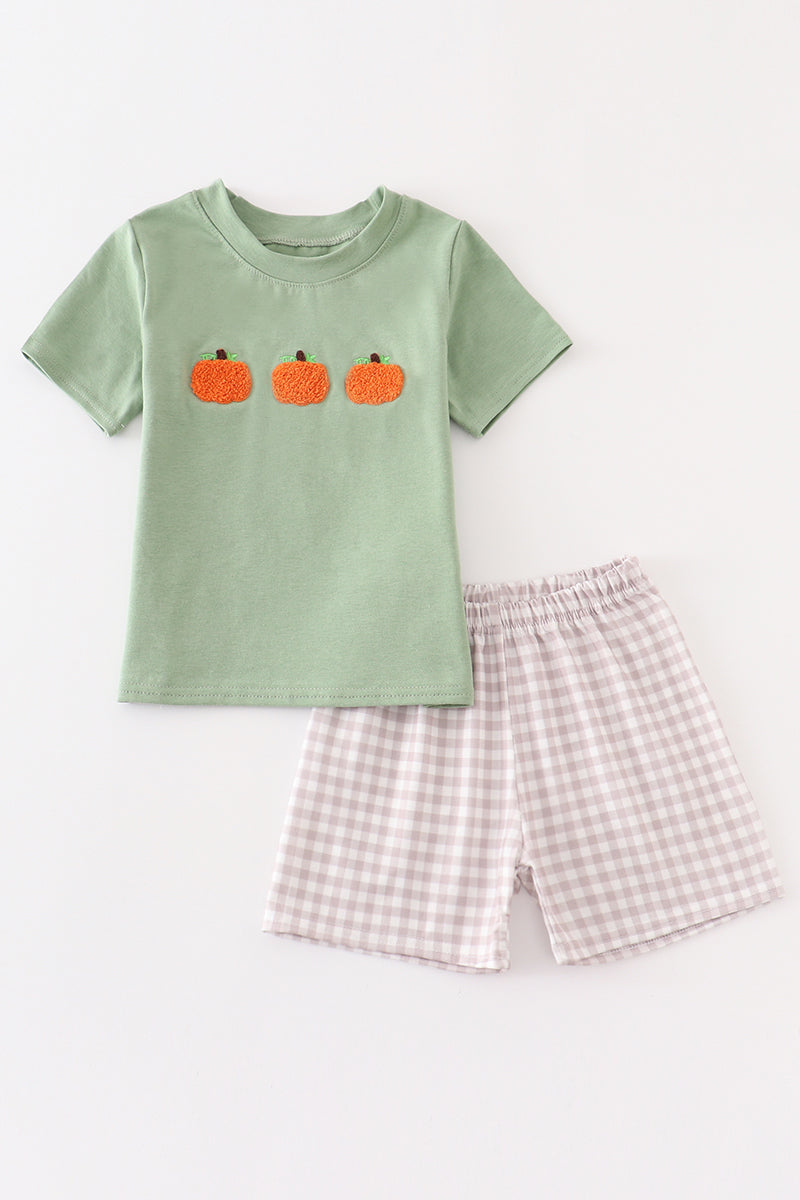 Green Plaid French Knot Pumpkin Boy Set