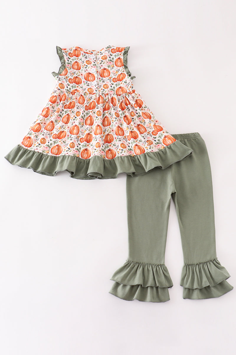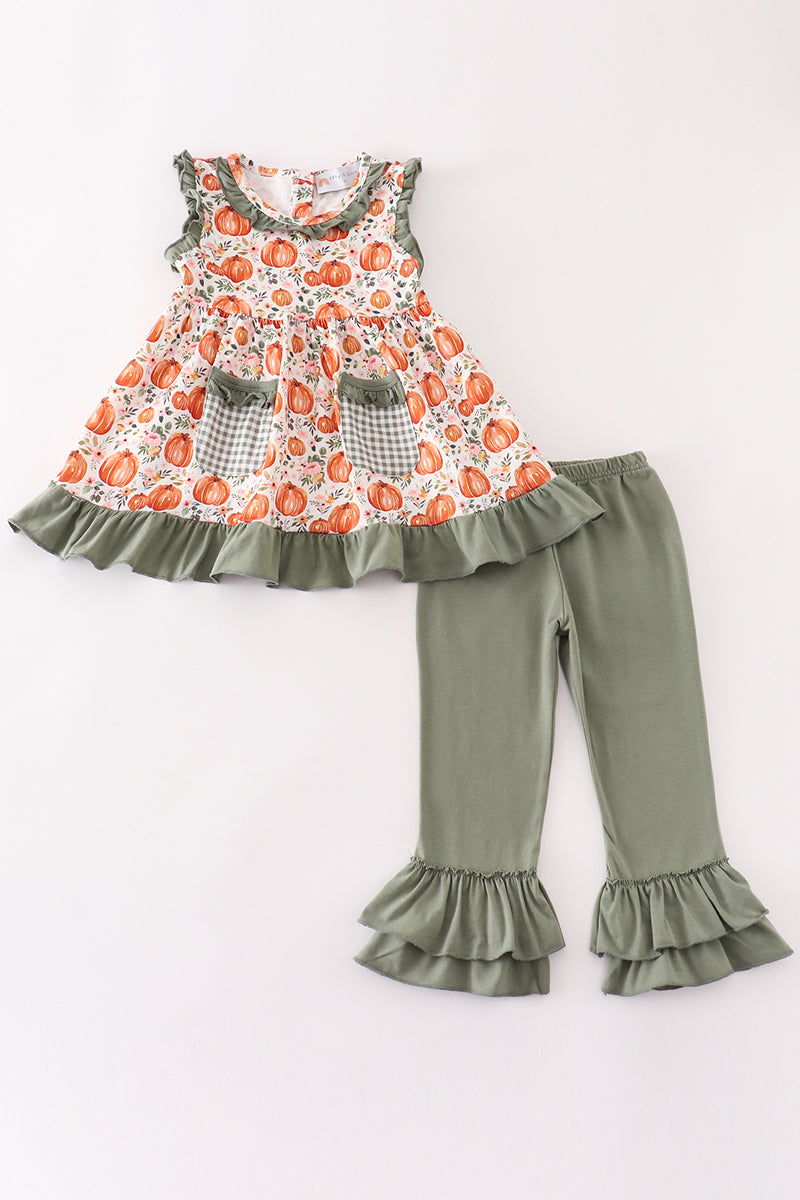 Green Pumpkin Ruffle Girl Set